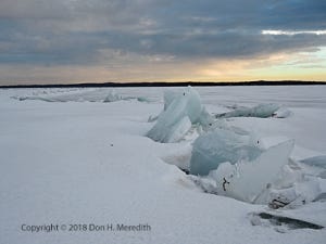 References: Some of the best information on lake ice behavior and how to cope with it is found at the Minnesota Department of Natural Resources. I found these documents to be particularly helpful: Ice Power! and Shoreline Alterations: Ice Ridges.
